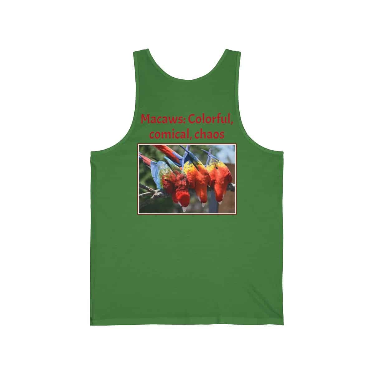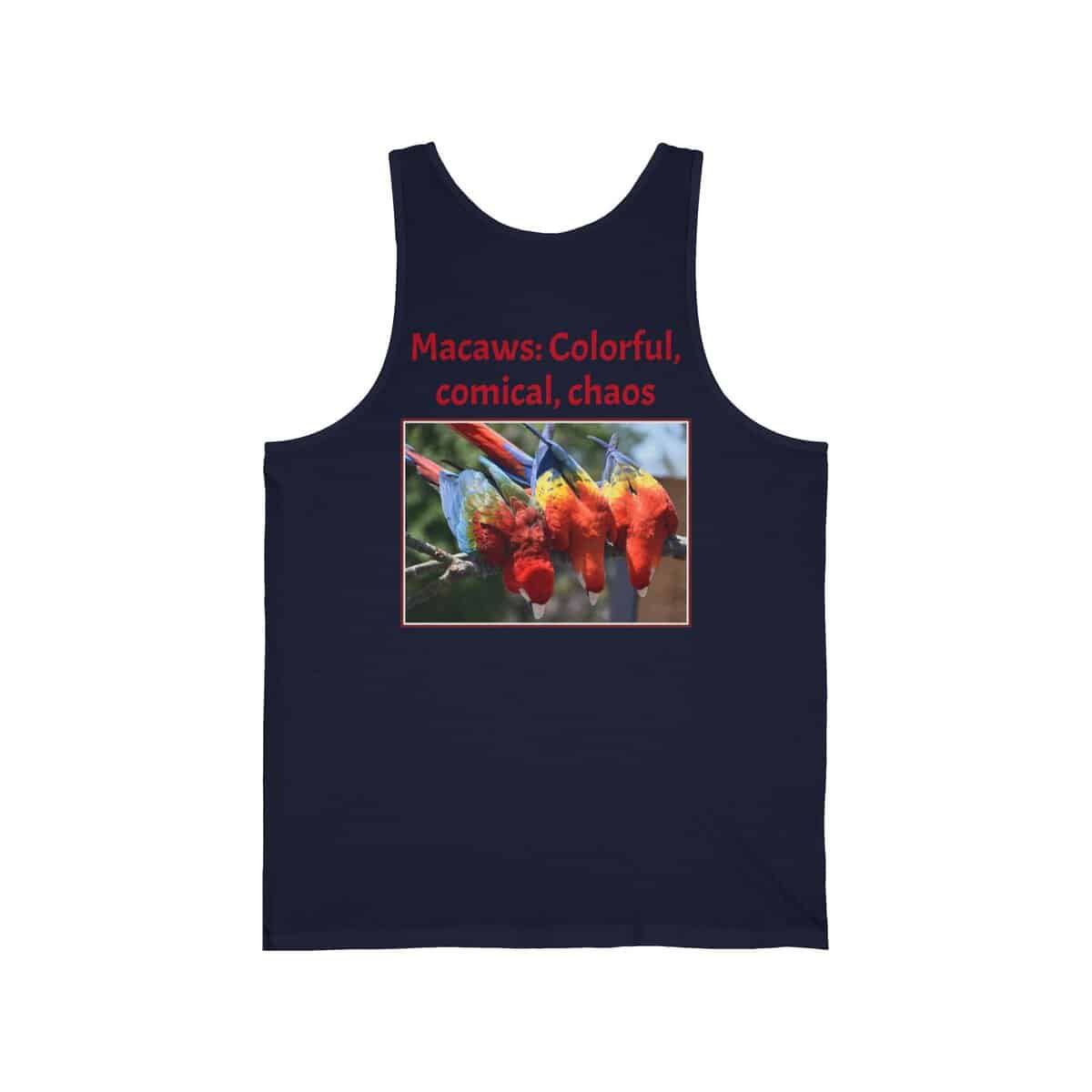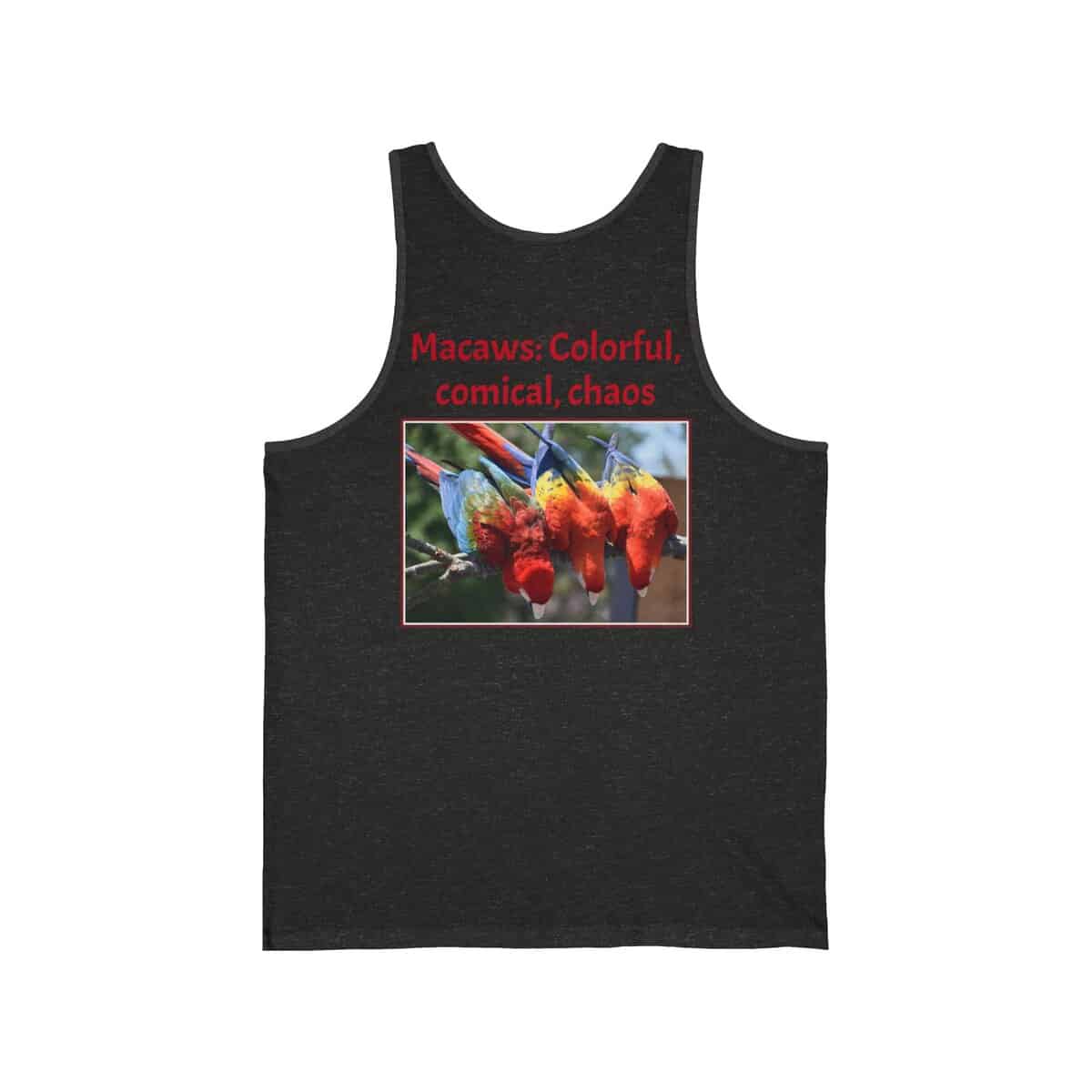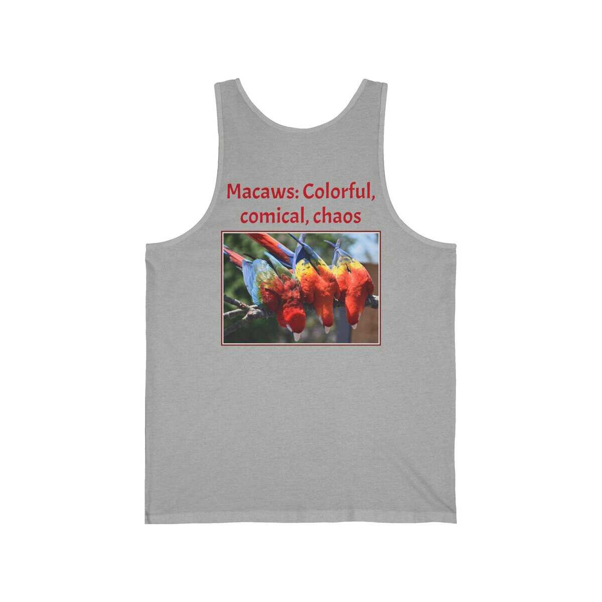 Colorful Macaw Unisex Jersey Tank – Fun Summer Shirt for Bird Lovers, Vibrant Vacation Wear, Gift for Nature Enthusiasts
